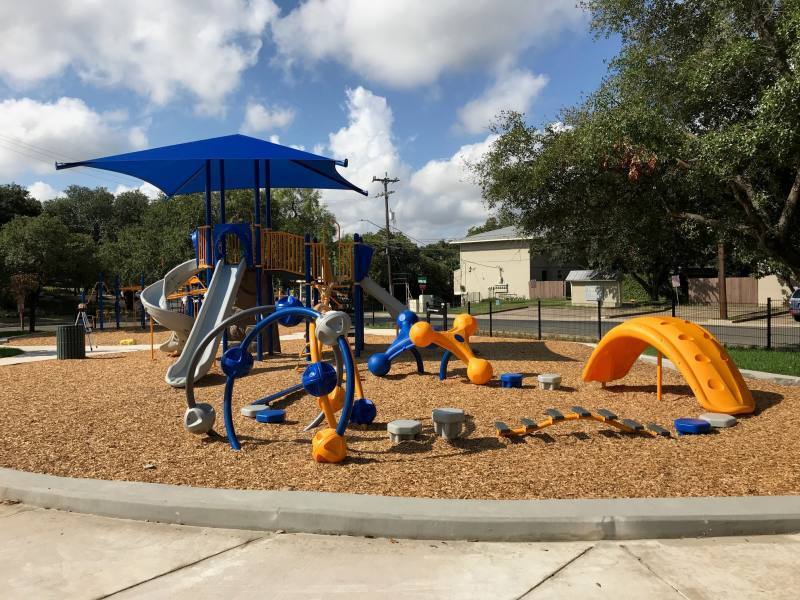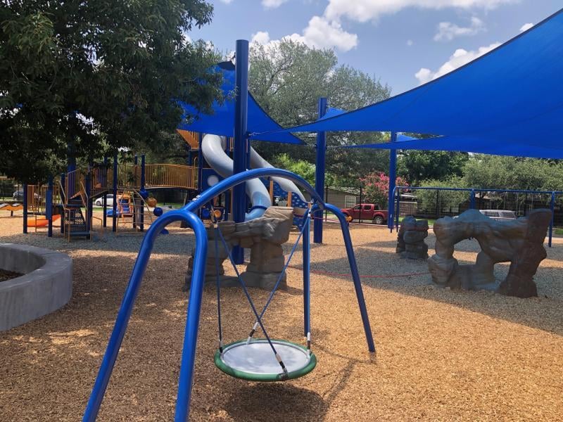 In a real-world example from Alamo Heights ISD, we worked with both of the elementary schools in their district (Woodridge Elementary and Cambridge Elementary) to completely renovate their respective play areas. We added an exciting mega-tower structure, three-bay swing set, a UPC Rock and Ropes course and an accelerator spring. Surfacing was also replaced and 3,000 square feet of freestanding shade was incorporated into the design.
